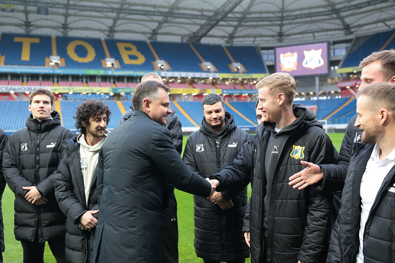 Губернатор Ростовской области Юрий Слюсарь приехал на стадион «Ростов-Арена» и пообщался с игроками, тренерским штабом и →