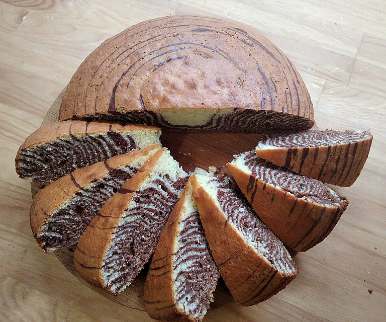 Мои ровесницы умеют печь этот пирог с самого детства. Именно на уроках домоводства в школе нас впервые познакомили с «Зеброй». Выпечка эта проста, не требует специального оборудования и много времени. Да и ингредиенты, из который «Зебра» состоит, есть на каждой кухне. Рецептов много, но именно этот мне полюбился больше других.