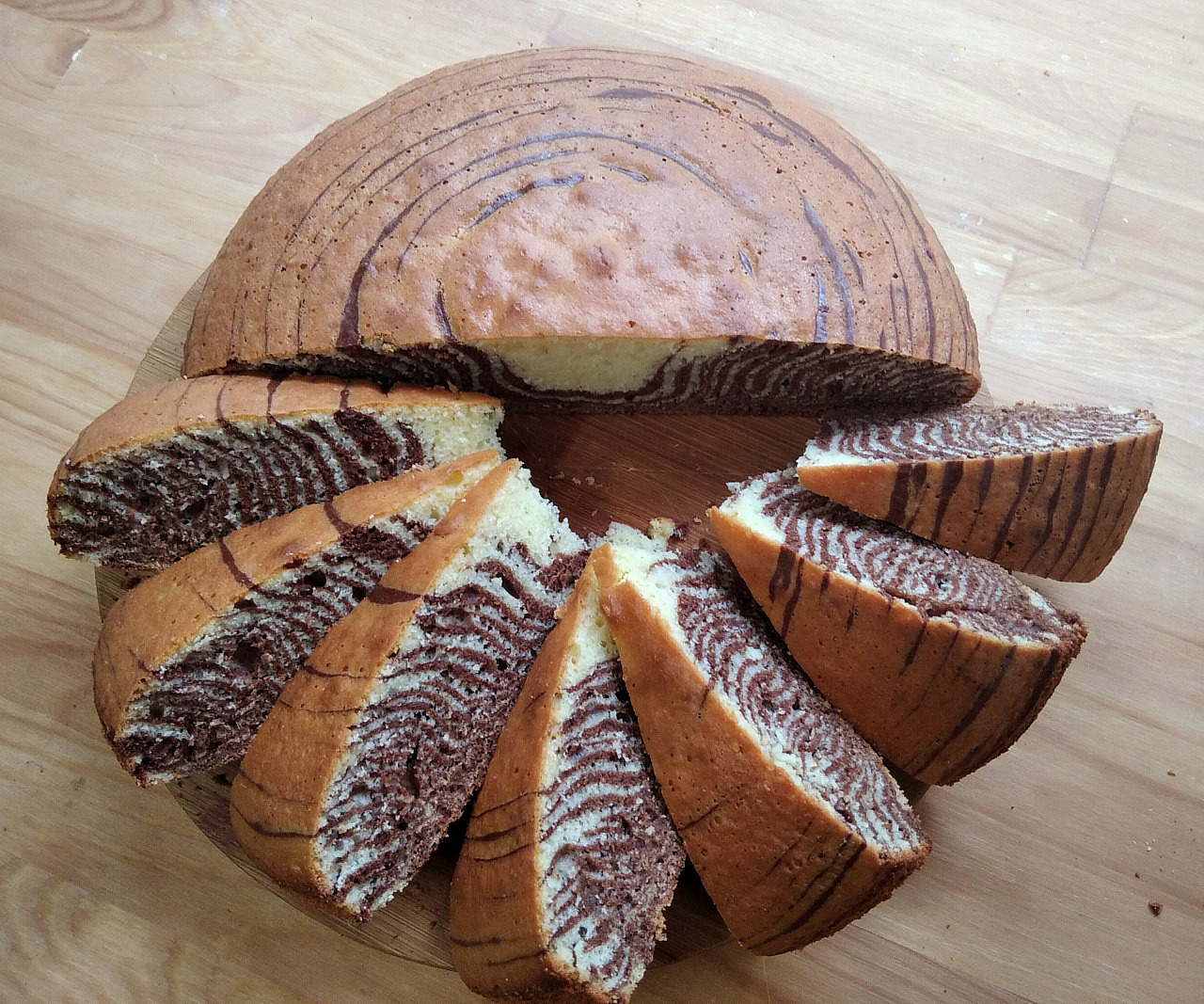 6. Готовый пирог выкладываем на решётку для остывания. Можно его покрыть шоколадной глазурью или же просто посыпать сахарной пудрой. Но это совершенно не обязательно, так как «Зебра» вполне самодостаточна. Нежная, вкусная, напоминающая детство.