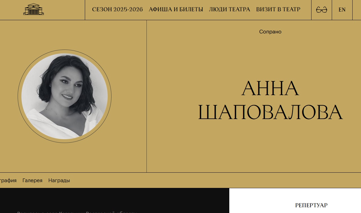 Скрин страницы Большого театра